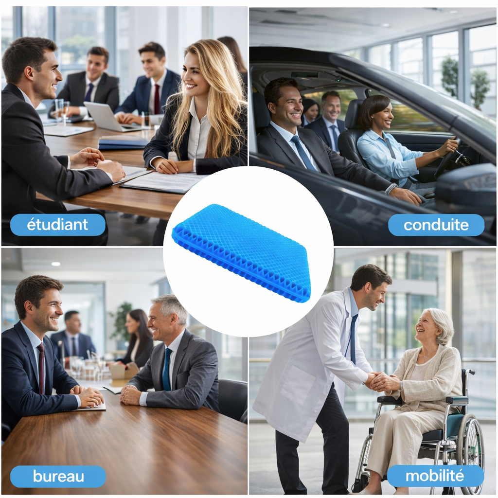 💡 En utilisant le coussin GelEase au quotidien, vous améliorez votre posture assise et réduisez les tensions liées aux longues heures assises.